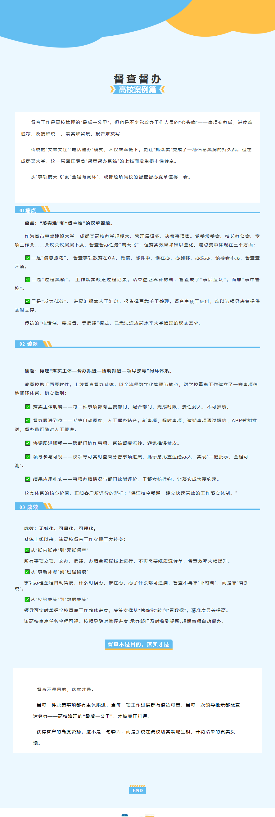 督查工作是高校管理的“最后一公里”,但也是不少党政办工作人员的“心头痛”——事项交办后,进度难追踪、反馈难统一、落实难留痕、报告难撰写......